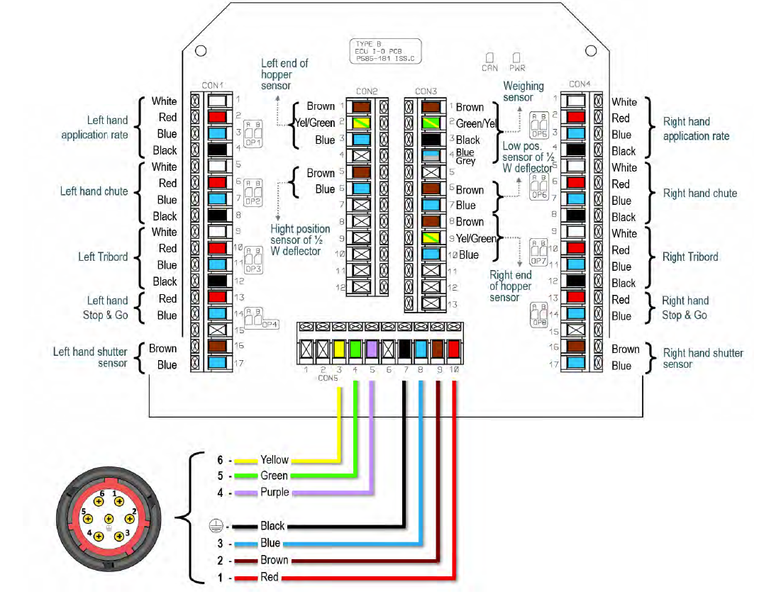 З'єднувальна коробка ECU має інклінометр, який постійно вимірює нахил розкидача добрив. Це вимірювання дозволяє коригувати пристрій зважування залежно від кута машини.