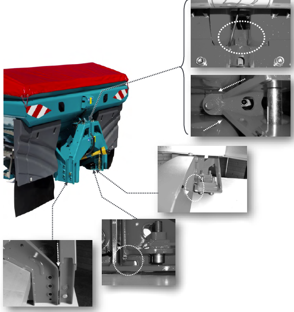 Та мають відповідати значенням вказаним табличці, яка розташована на рамі розкидача зі сторони трьохточкової навіски
